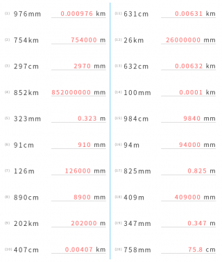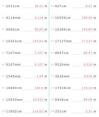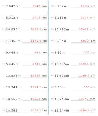 メートル(m)からセンチメートル(cm)、ミリメートル(mm)