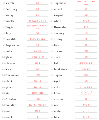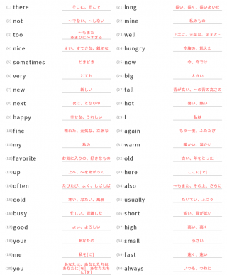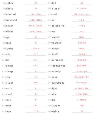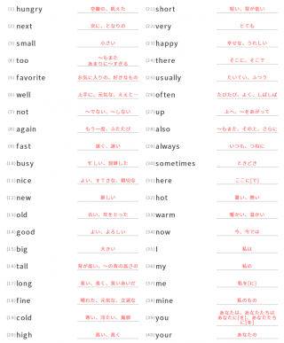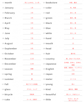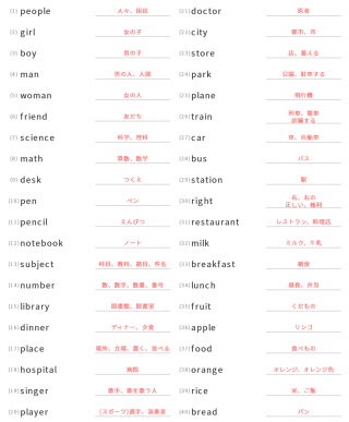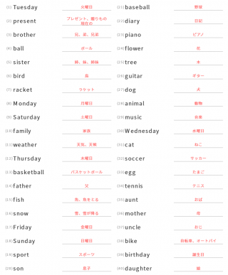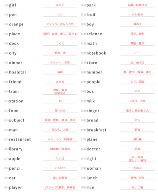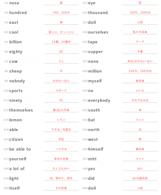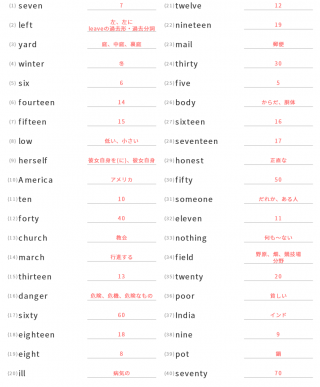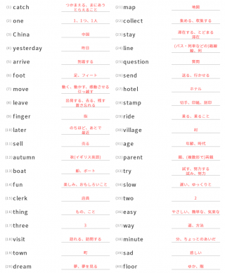 中学1年生英単語中学1年生向け英単語が40問出題されます。