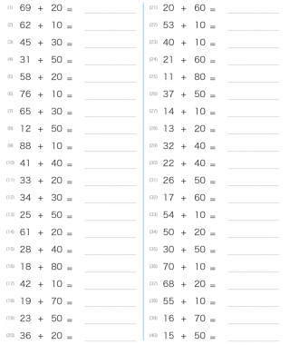 2桁から10の倍数を足す問題が出題されます。