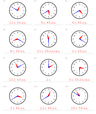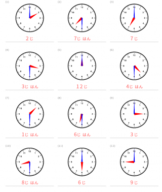 30分単位の時計の読み方の練習問題が出題されます。