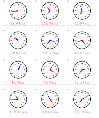 1分単位の時計の読み方の練習問題が出題されます。