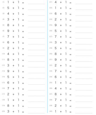 小学1年生算数足し算就学前1~9の数に1を足す計算が出題されます。