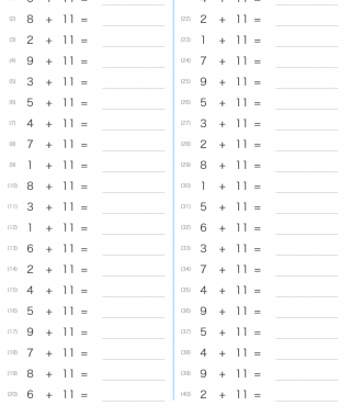 小学1年生算数足し算繰り上がり1~9の数に11を足す計算が出題されます。