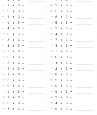 小学1年生算数足し算繰り上がり1~9の数に3を足す計算が出題されます。