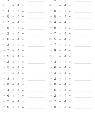 小学1年生算数足し算繰り上がり1~9の数に4を足す計算が出題されます。