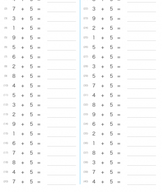 小学1年生算数足し算繰り上がり1~9の数に5を足す計算が出題されます。