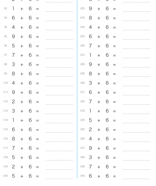 小学1年生算数足し算繰り上がり1~9の数に6を足す計算が出題されます。