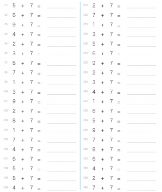 小学1年生算数足し算繰り上がり1~9の数に7を足す計算が出題されます。