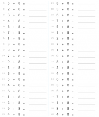 小学1年生算数足し算繰り上がり1~9の数に8を足す計算が出題されます。