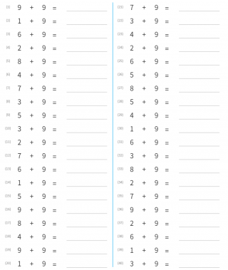 小学1年生算数足し算繰り上がり1~9の数に9を足す計算が出題されます。