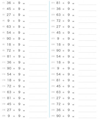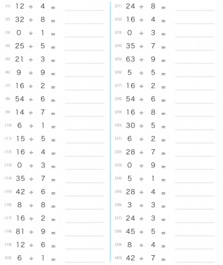 小学3年生算数割り算0を含む81までの数を1~9で割る問題が出題されます。