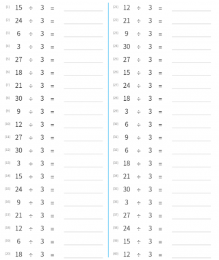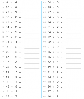 小学3年生算数割り算81までの数を2~9で割る問題が出題されます。