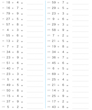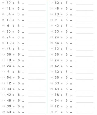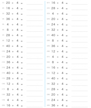 小学3年生小学4年生算数割り算暗算2桁÷1桁=2桁の問題が出題されます。