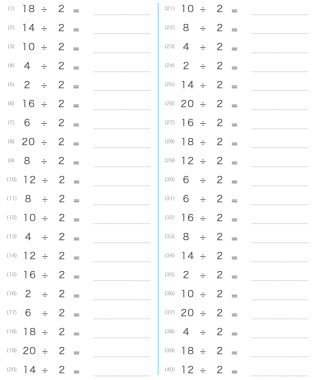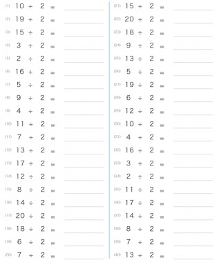 小学3年生算数割り算余りあり2で割る練習が出題されます。