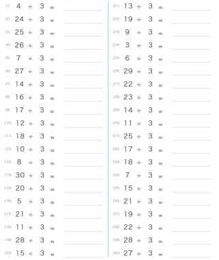 小学3年生算数割り算余りあり3で割る練習が出題されます。
