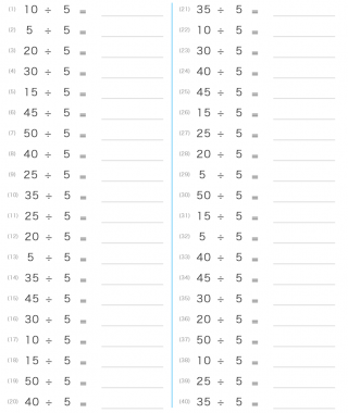 小学3年生算数割り算余りあり5で割る練習が出題されます。