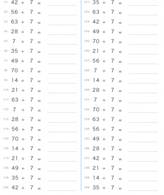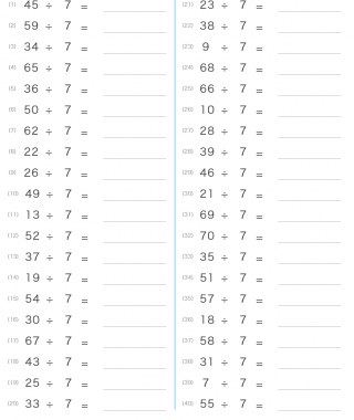小学3年生算数割り算余りあり7で割る練習が出題されます。