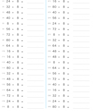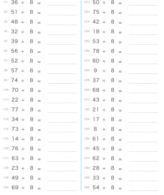 小学3年生算数割り算余りあり8で割る練習が出題されます。