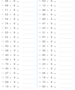 小学3年生算数割り算余りあり9で割る練習が出題されます。