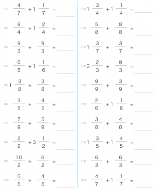 同じ分母の足し算が出題されます。