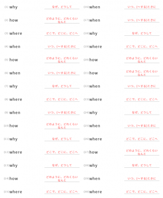 それぞれのステージに合わせて英単語を繰り返し学習できるように英単語の自動生成プリントを用意しました。暗記シート(赤シート)に対応した印刷も可能です。※単語データ ver.2021.08.16版