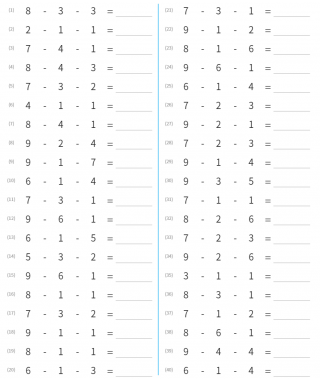 小学1年生算数引き算10から1~9の数を引く計算が出題されます。