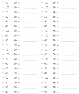 小学3年生算数引き算繰り下がり暗算2桁-2桁の計算が出題されます。