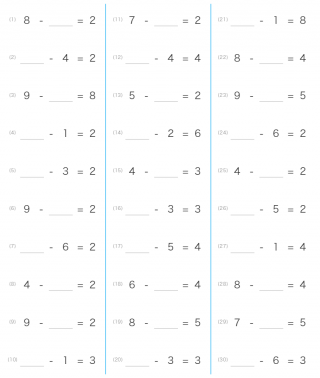 小学1年生算数引き算虫食い算繰り下がりなしの引き算が出題されます。