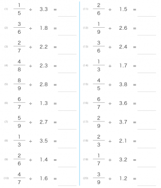小学6年生算数割り算分数小数約分分数÷小数の計算が出題されます。