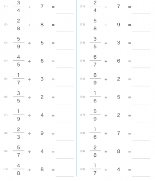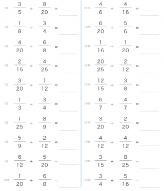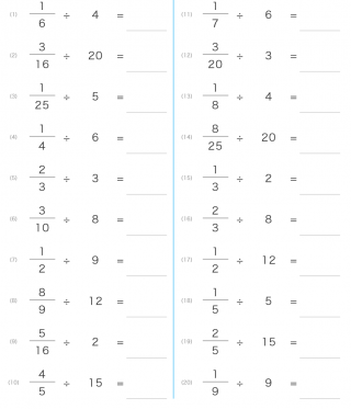 小学6年生算数割り算分数真分数約分分数÷整数の計算が出題されます。
