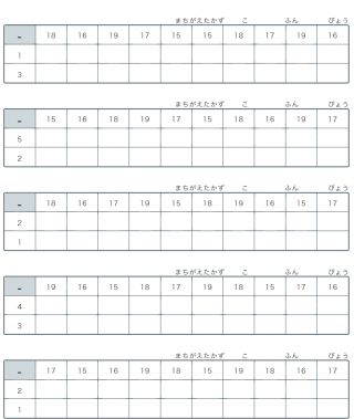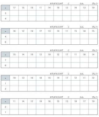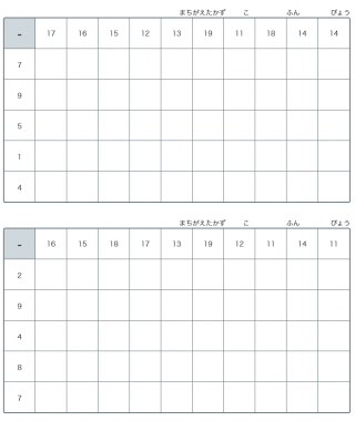 小学1年生算数ます引き算繰り下がり2桁の繰り下がりありの引き算が20ます出題されます。