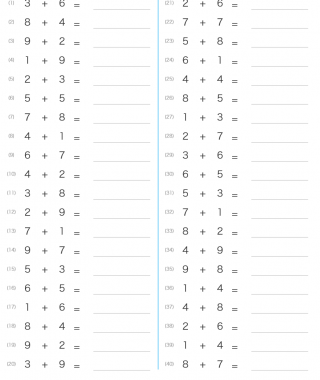 小学1年生算数足し算繰り上がり1~9の数に9を足す計算が出題されます。