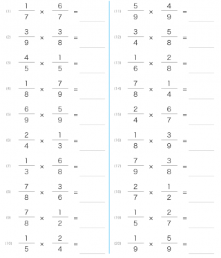 小学6年生算数掛け算分数真分数約分分数×分数の計算が出題されます。