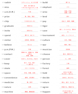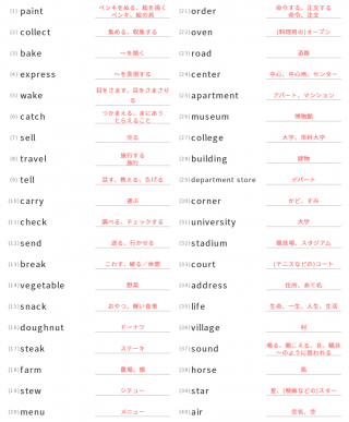 英単語英検英検3級英検3級対策の英単語が40問出題されます。